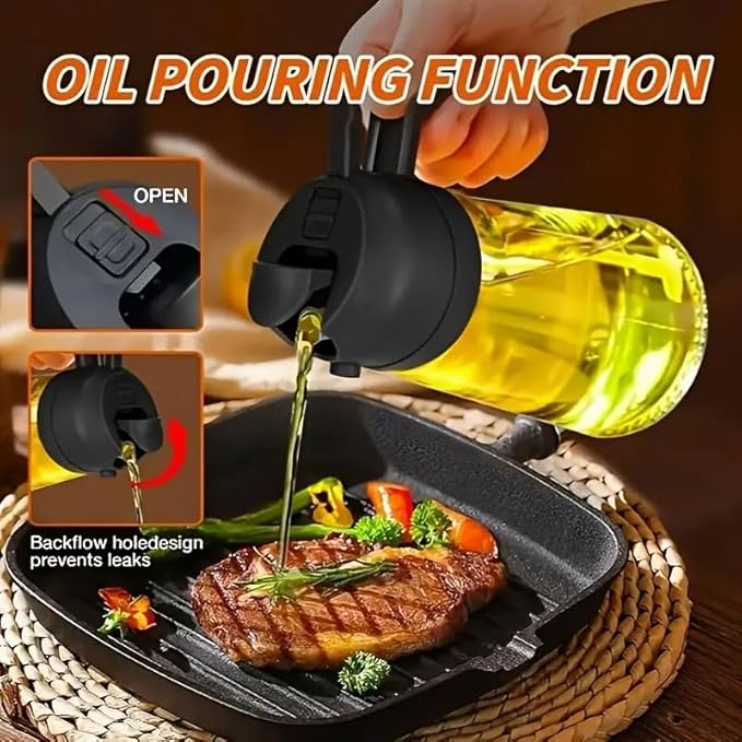 The 2-In-1 Portable Oil Sprayer and Dispenser combines a fine mist sprayer and a smooth pouring spout in one convenient bottle. Designed to give you better control over oil usage, it’s perfect for healthier cooking and everyday kitchen tasks. Ideal for cooking, grilling, air frying, baking, and salad making, this compact and portable oil bottle is a must-have kitchen essential.