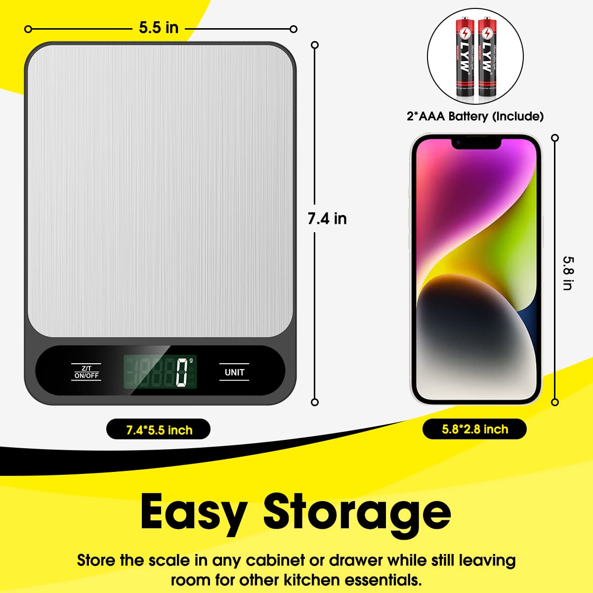 The Mik-Nana Food Scale is a precise and reliable digital kitchen scale designed for everyday cooking, baking, and coffee preparation. With a high weighing capacity of up to 10kg (22lb) and support for multiple measurement units, it ensures accurate results every time. The sleek stainless steel surface is easy to clean, while the LCD display and tare function make weighing simple and efficient.