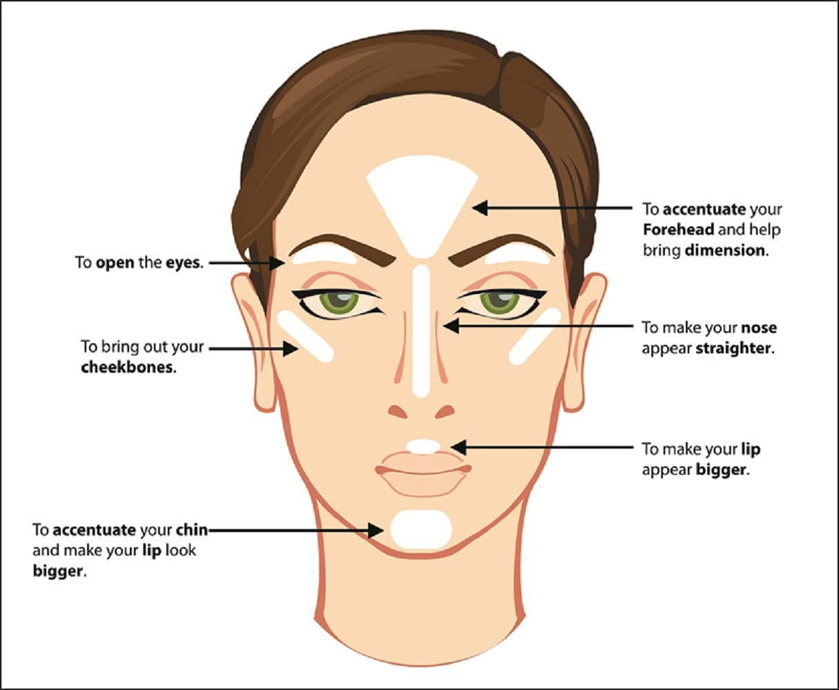 Apply to high points such as the bridge of the nose or Cupid’s bow.