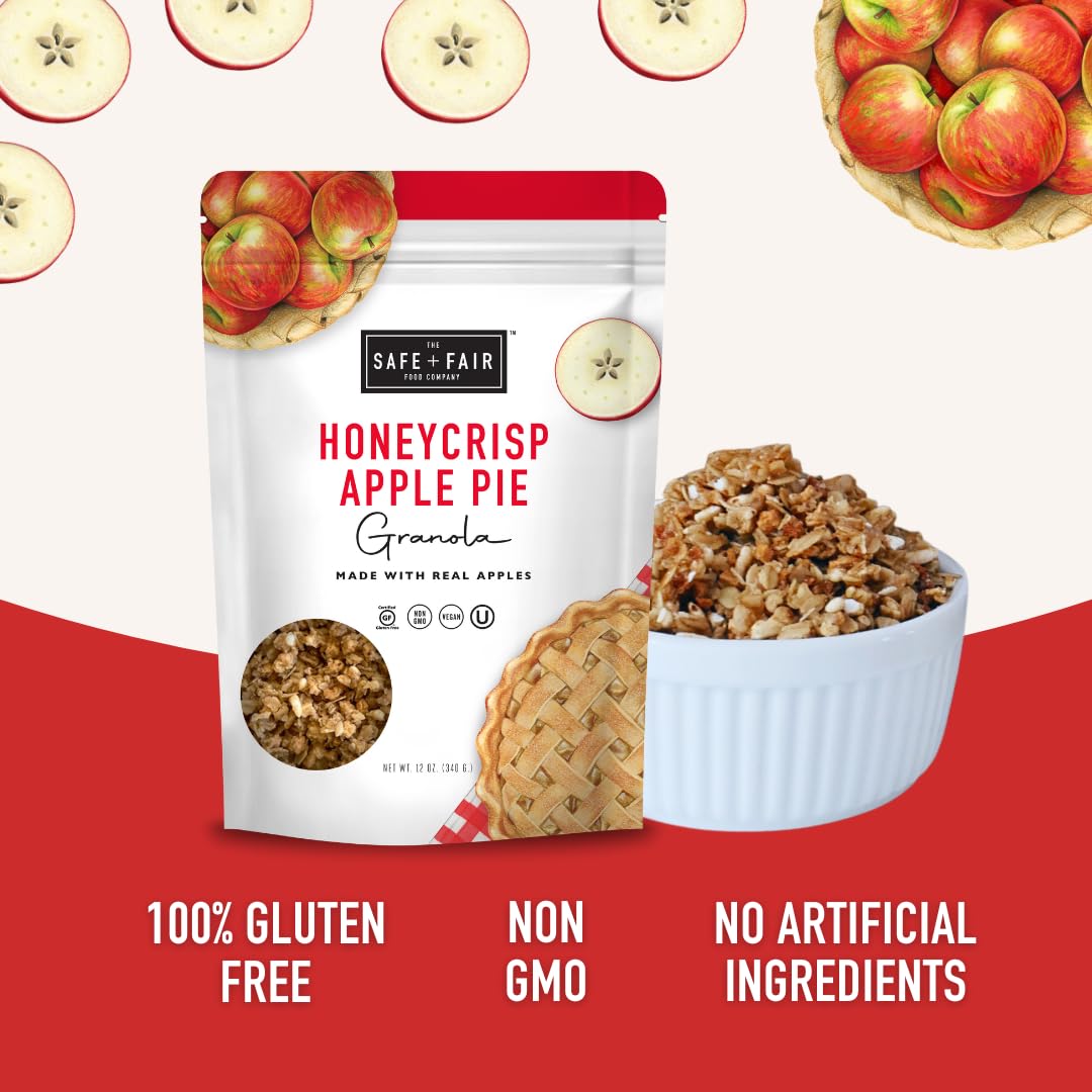 Safe + Fair Honeycrisp Apple Pie Granola – Gluten-Free, Vegan & Plant-Based Snack with Real Honeycrisp Apples, Whole Grains, Non-GMO, Kosher, No Preservatives – 12oz, 6 Pack